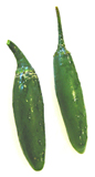 生タイプの代表的なものは、最近日本でもよく知られるようになったハラペーニョ、大きなピーマンのような形でもっと味の濃いポブラーノ(下欄参照)、メキシコでは一番よく使われるもので緑色のセラーノ(下欄参照)、そして最近日本でブームになっているユカタン半島原産の激辛トウガラシ、アバネロ(日本ではハバネロと呼ばれている)などがあります。また辛さの度合いにはスコヴィルという単位が使われますが、アバネロの場合、辛味は30万スコヴィル程度で、これはハラペーニョの約80倍、タバスコの約10倍の辛さに当たります。一部の激辛マニアには珍重されていますが、くれぐれも扱い方には細心の注意が必要です。そして、これらのトウガラシは、そのフレッシュな風味を生かして、ソース(サルサ)などに良く使われます。