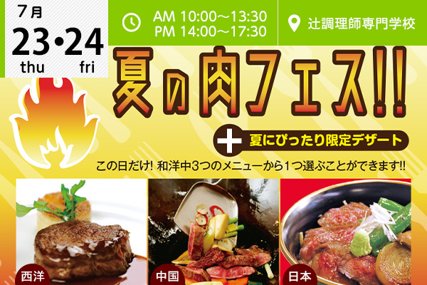 【7月23・24日】この日だけ!『夏の肉フェス!!』 + 夏にぴったり限定デザート(辻調理師専門学校)