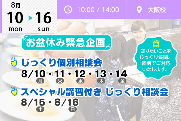 【お盆休み緊急企画】☆★じっくり個別相談会★☆15日・16日は講習つき!!(大阪校)