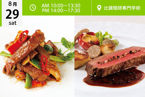 【8月29日】選べるフェア♪ 中国料理「牛サーロイン黒胡椒炒め」or 西洋料理「牛フィレ肉のステーキ」(辻調理師専門学校)