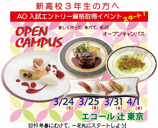 【3月24日・25日・31日、4月1日】2019年春入学!AOエントリー資格取得イベントスタート!(エコール 辻 東京)