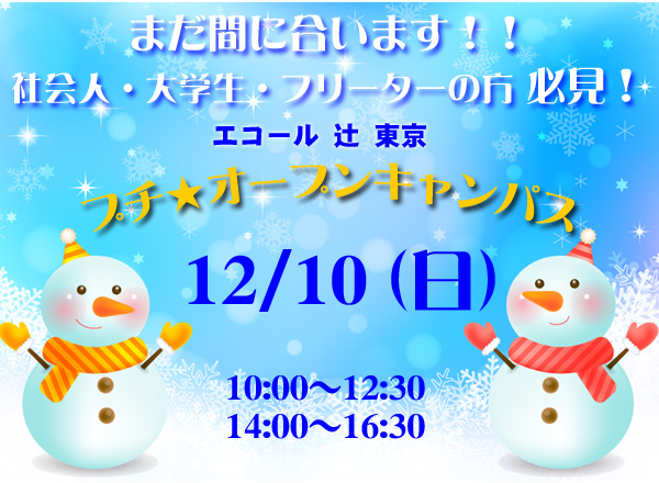 【12月10日】プチ★オープンキャンパス開催♪(エコール 辻 東京)
