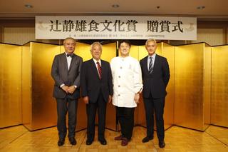 (写真右)辻静雄食文化賞 専門技術者賞 (左から:門上武司氏、石毛直道氏、山本征治氏、辻芳樹