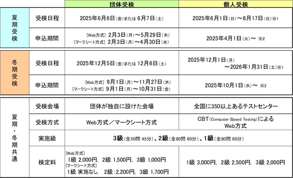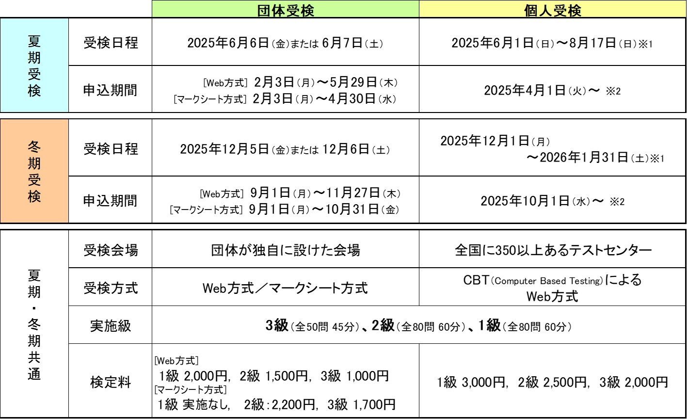 【夏期受検の申込み】団体受検2/3~、個人受検4/1~受付開始