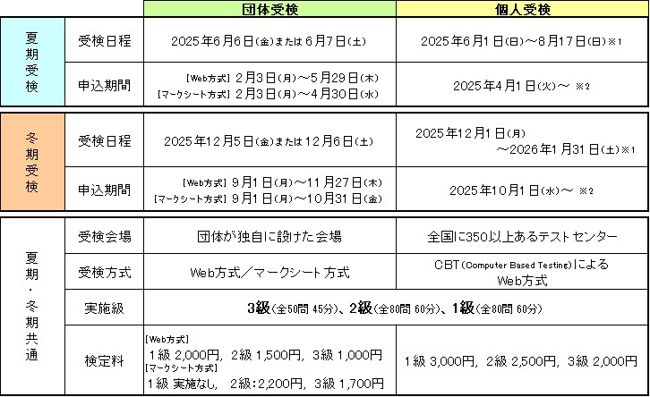【夏期受検の申込み】団体受検2/3~、個人受検4/1~受付開始