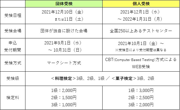 ― 料理検定・菓子検定 冬期受検概要 ―![]()