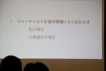 どんなに知ったかぶりをして書いていても、ジャーナリストは、結局は部外者。辻静雄は、料理の世界に身を置いてはいましたが、必ずどこかに部外者の目を持っていた気がする。それは、その著作から感じるものであり、大局的にある距離をおいてみる。ある大枠から見る。単にノウハウだけではなく、相手を相対化してみるという姿勢を、常に、無意識にせよ、心のどこかに持っていた。教育者であり、創作者であった辻静雄の生涯には、常にジャーナリストとしてのセンスがあったと話します。