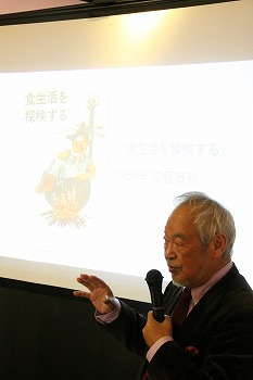 国立民族学博物館名誉教授、総合研究大学院大学名誉教授である石毛直道先生。京都大学のご出身で、専門分野は民族学、食文化論です。さらに石毛先生の先生は、桑原武夫先生、今西錦司先生、中尾佐助先生、篠田統先生など、食文化研究に携わる人なら知らない人はいないだろうというような方ばかりです。海外旅行がお好きで探検部に入られ、考古学研究で世界中を回られたことが1969年に最初に出された本になるのですが、この本のことを辻静雄は、1970年の学生の講義の中で、「京大の人文科学研究所の助手をしている石毛直道さんという人が書いた「食生活を探検する」というすごく面白い本があるので、読んでごらん」。と、学生に紹介しています。