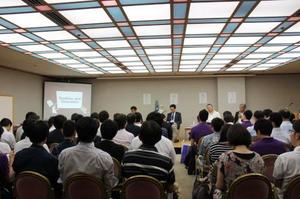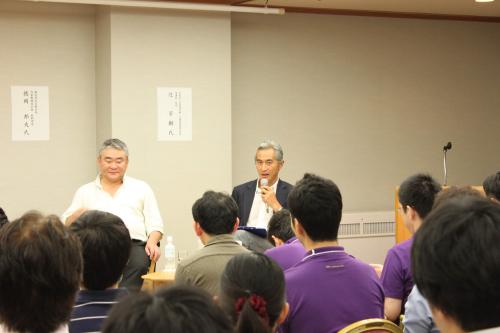ファシリテーターは楠本修二郎さん(カフェ・カンパニー社長)。パネリストとして、大倉治彦さん(月桂冠社長)、徳岡邦夫さん(京都吉兆総料理長)と辻芳樹校長が登壇しました。聴講された50名ほどの皆さんはグロービスの在校生や卒業生。その熱心な聴講態度には驚きました。これから、日本のさまざまな分野で活躍される方々に、日本の食文化に対してこれほど熱心に興味を持っていただき、心強く感じました。