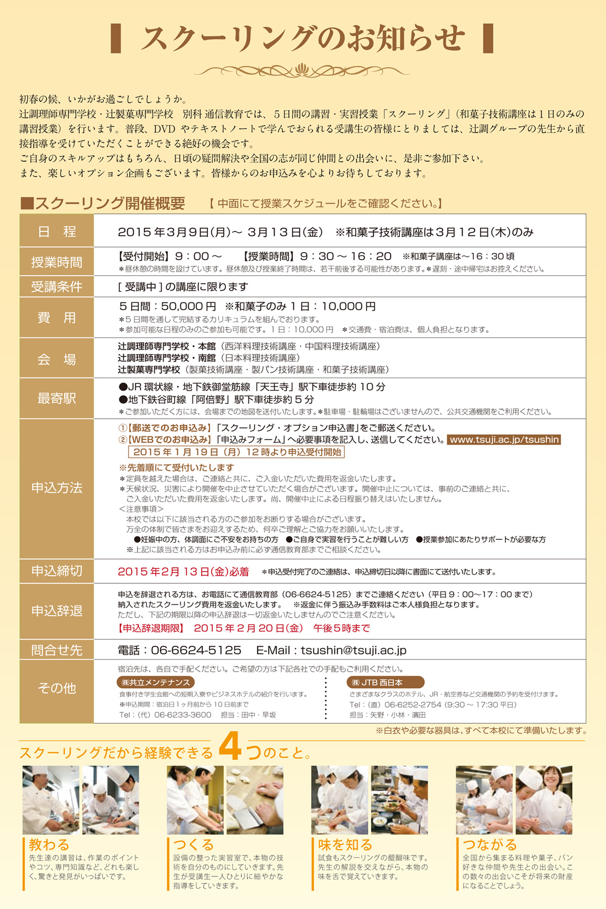 【2015年3月スクーリング&オプション企画 申込受付開始!!】
