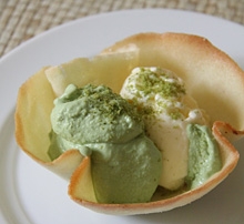 そして材料も違う。抹茶バージョンなんか、できあがり量約500gのアイスクリームのルセットに抹茶を15gも使用するというゴージャスさだ。15gという数字だけみるとたいしたことがなさそうだが、相手は抹茶である。羽のように軽い。私が日本から持ってきてチビチビ使っていた高級抹茶の缶が半分なくなってしまった。ところが、できあがりを食べてみると、本物の抹茶の味が濃く、それがバニラアイスの強目の甘みやコクと混ざり合って、こんなにおいしい抹茶アイスは食べたことがない!という驚愕のお味。抹茶アイスなんて、日本ならどこでも食べられるけれど、どれもこれも、そのイマイチさで大同小異なのは、こういうことだったのだ。厳選された材料をたっぷりと使い、丁寧に時間をかける。そんなお菓子作りは手