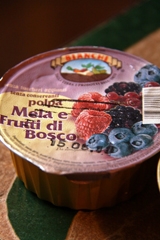 冷凍のフルーツピューレは売っていなかったため、赤ちゃんの離乳食として、そして最近ではヘルシー志向の人たちがおやつに食べると言うものを購入。添加物も砂糖も一切入っていないものだから、これでよしとしよう。りんごだけ、フランボワーズ(ラズベリー)だけ、というのがなかったので、ベリー&リンゴのミックスというのを購入。