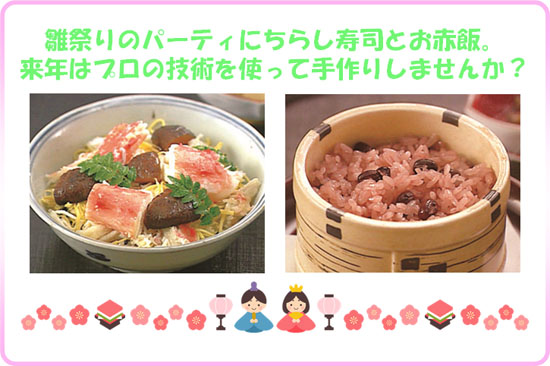 通信教育・日本料理技術講座では、お雛様にかかせない『ちらし寿司』や、