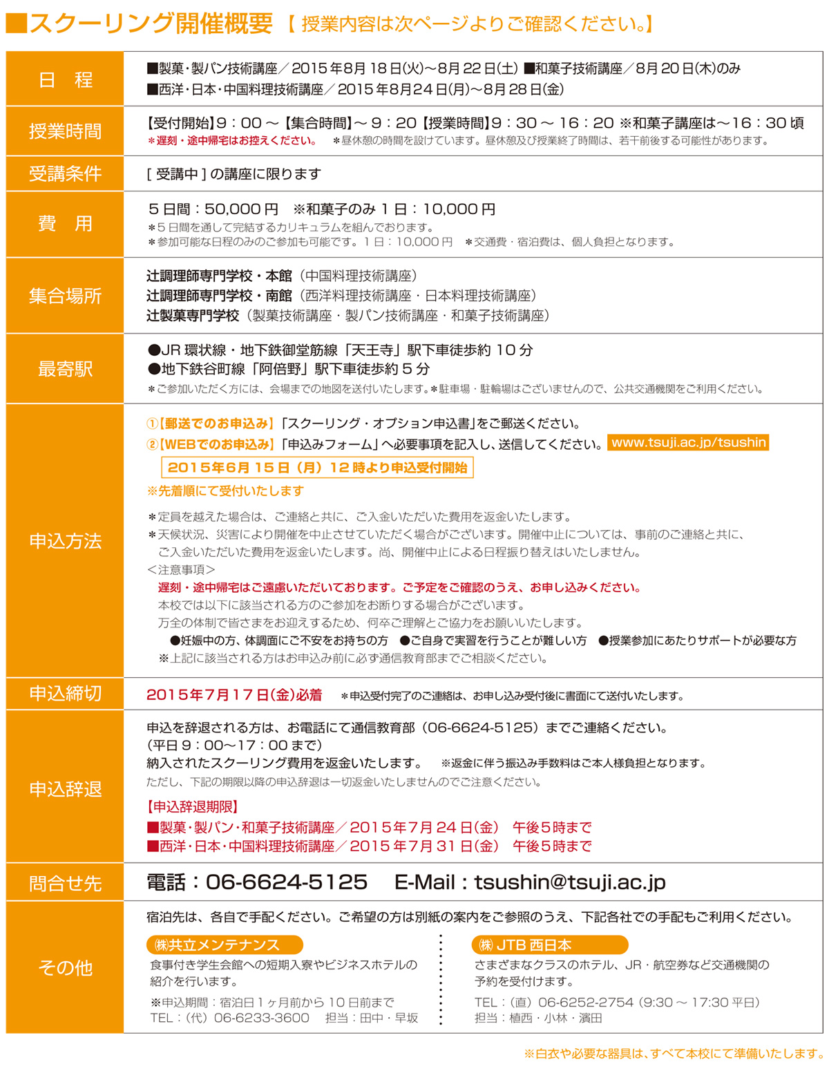 電話:06-6624-5125 E-Mail:tsushin@tsuji.ac.jp
