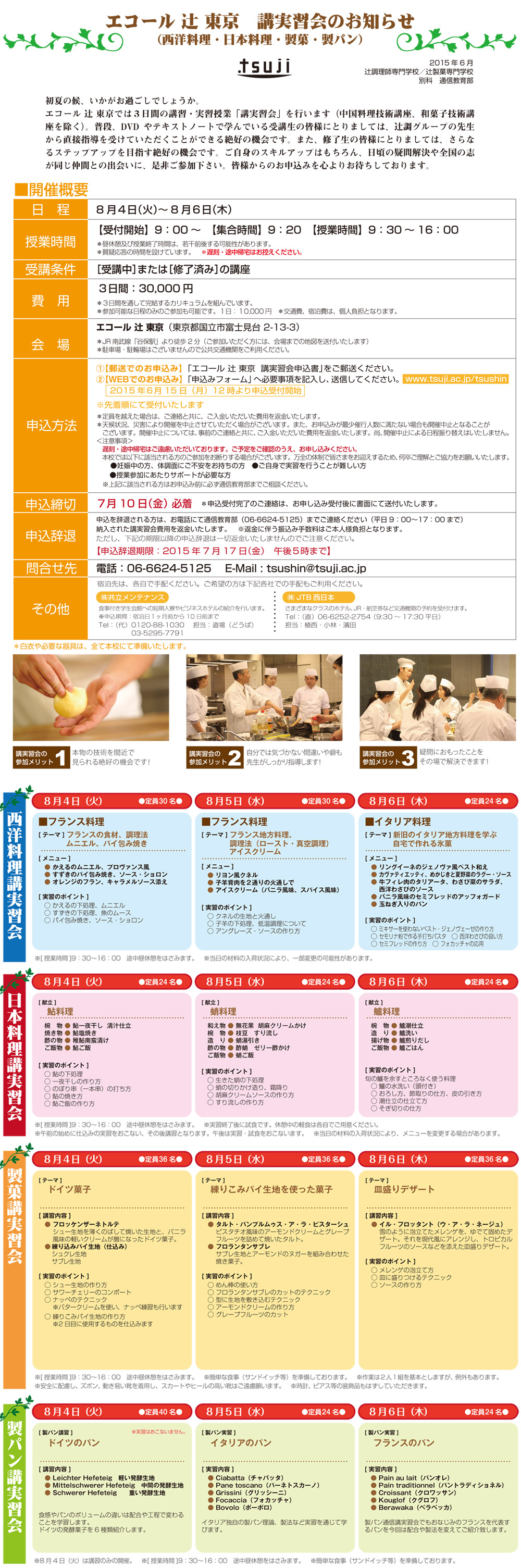 【2015年8月 東京講実習会(東京校開催)のお知らせ】