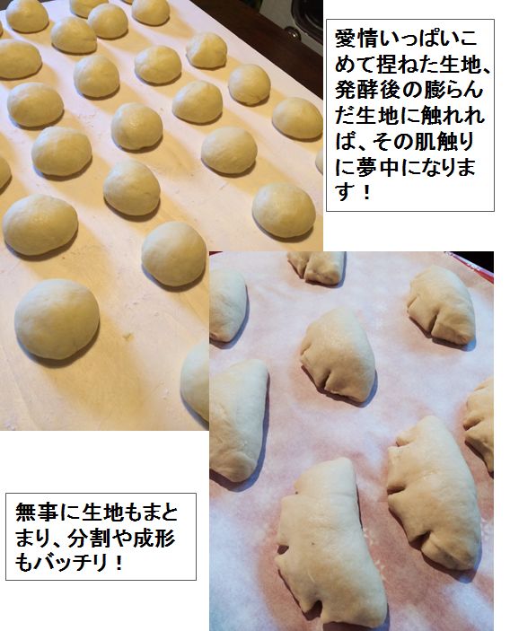 に近くなったので、ミキシング終了、発酵、分割とその後の作業は滞りなくすすんだ。