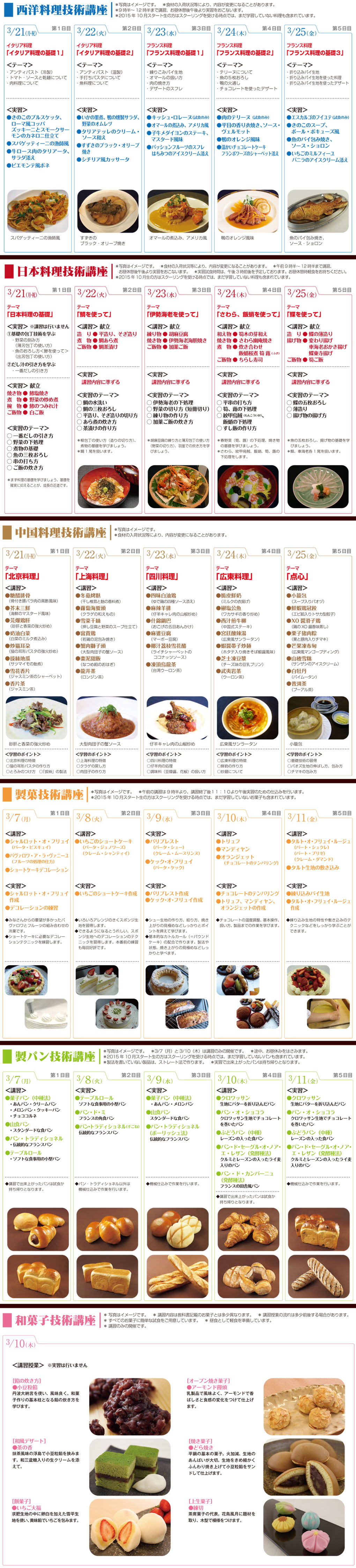 西洋・日本・中国料理技術講座:2016年2月26日(金)必着