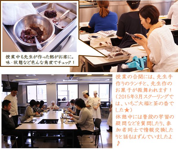 授業の合間の試食で、自分の舌で正しい餡の固さや風味、