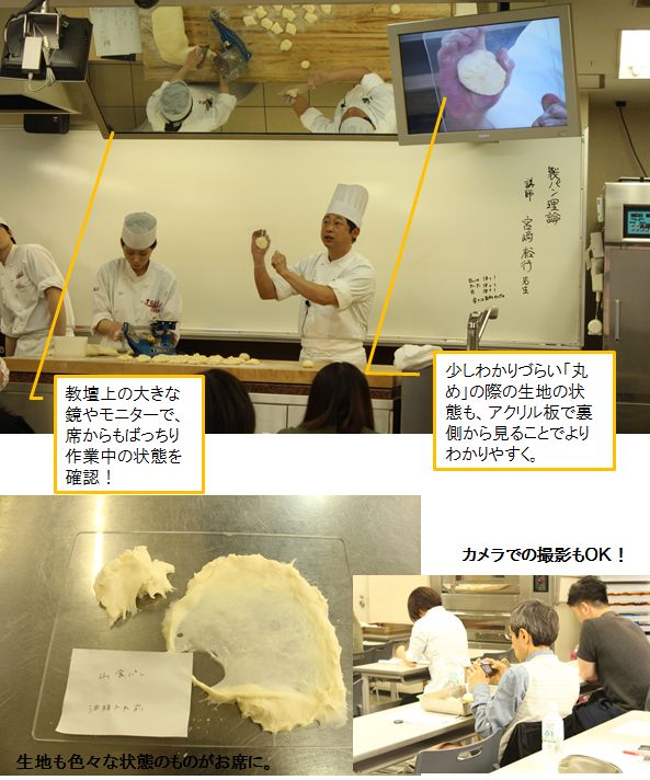 先生が教壇で次々と魔法のようにパンをしあげていきます。