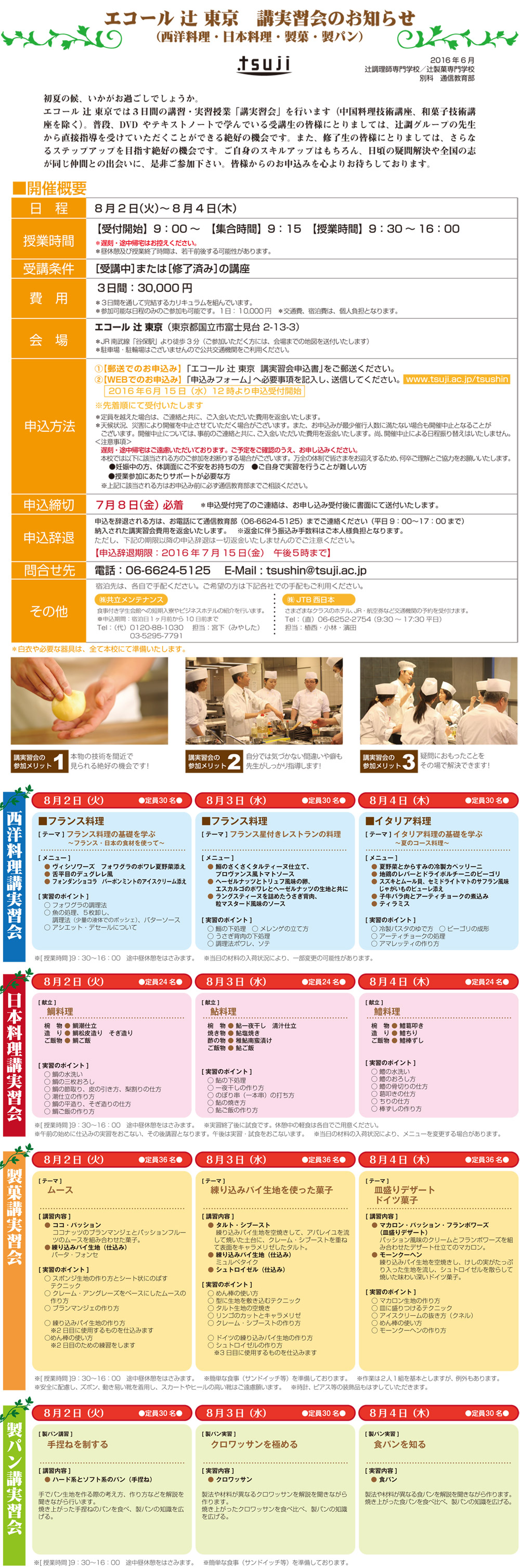 ①郵便でのお申込:エコール 辻 東京 講実習会申込書をご郵送ください。