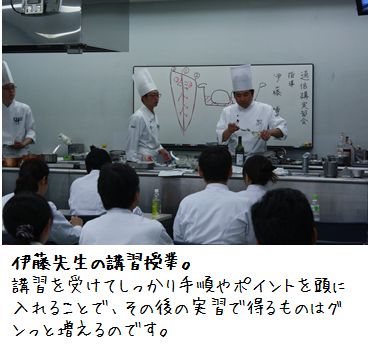 まずは午前中、伊藤先生の講習授業を受講いただき、料理の手順や注意点をしっかり頭に入れていただきます。