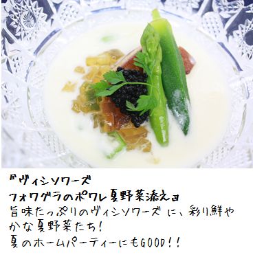 『ヴィシソワーズ フォワグラのポワレ夏野菜添え』