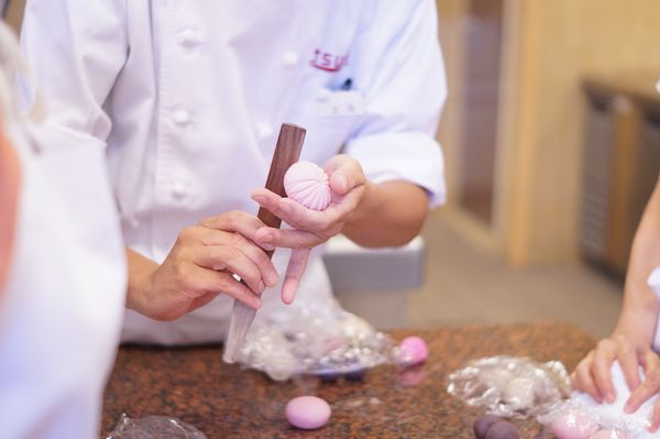 午後からの練切の作成では、実習室で間近に先生の手元を見ていただきました!