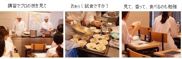 至近距離でプロの技を学ぶだけでなく、本物の味を 舌で覚えていきます。