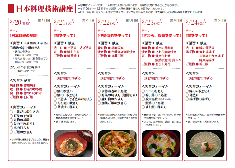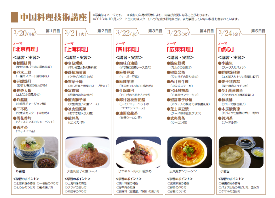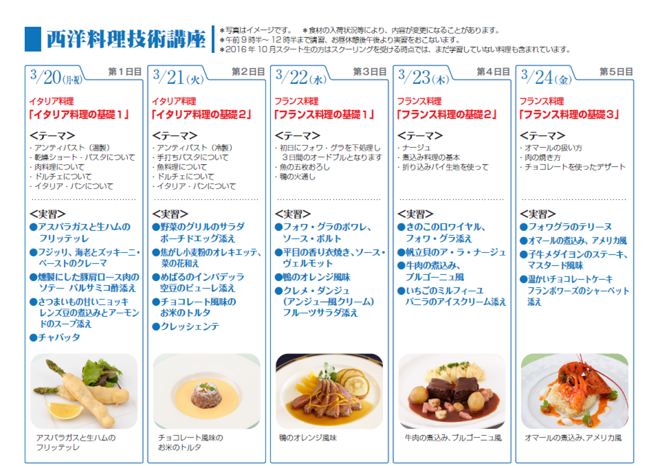 | 西洋料理技術講座 | 日本料理技術講座 | 中国料理技術講座 |