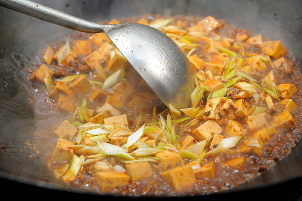 中国料理技術講座では、本場と同じ牛肉、葉ニンニクでつくるマーボー豆腐のつくり方を学びます。