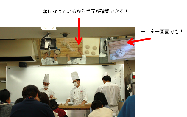教壇に立つ先生の手元は、モニター&天井の鏡でしっかり確認。