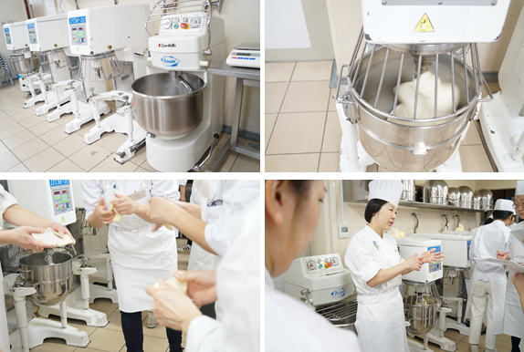 あこがれの(?)スパイラルミキサーに、プロ仕様のオーブン(!)を使っての実習。