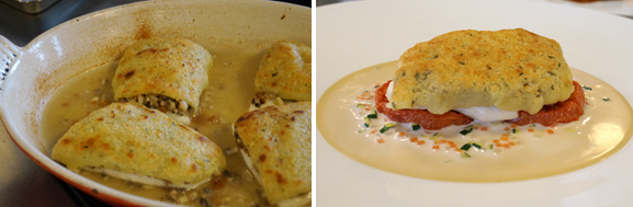 辻調の先生の授業を受けることによって、「何分焼く」ことが大切なのではなく「赤い肉汁が出てきたら・・」が大事であること、また、付けあわせのピューレもジャガイモと決めてしまうのではなく、そら豆を使ってもできることがわかり、「じゃあ他の食材だとどうなる?」とイメージを広げることができると感じました。