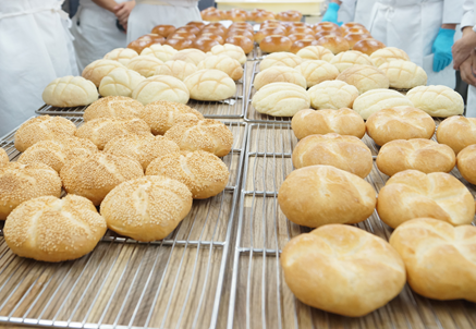 この日は終日実習で、ハードトーストにあんぱん、メロンパン、カイザーゼンメルをつくりました。
