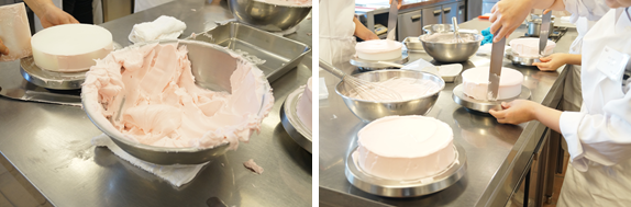 ナペ、絞り出しなど、練習台を使用して。何度も練習あるのみです。