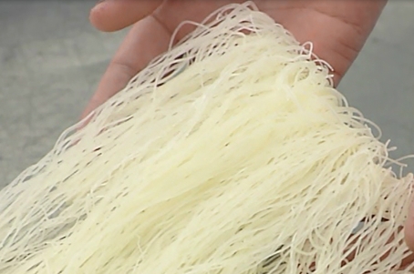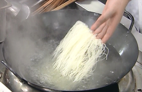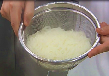 まず、ビーフンは、熱湯に入れて戻していきます。