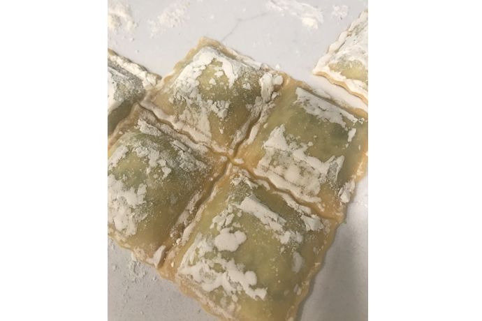今回ラヴィオリに挑戦したKさん。詰め物入りのパスタはアルデンテではなく柔らかめに茹でて、中の詰め物の味を楽しませるメニューです。さて、手打ちパスタは卵入りとほうれん草入りの2種類で、今回も美味しそうに仕上がりましたよ。